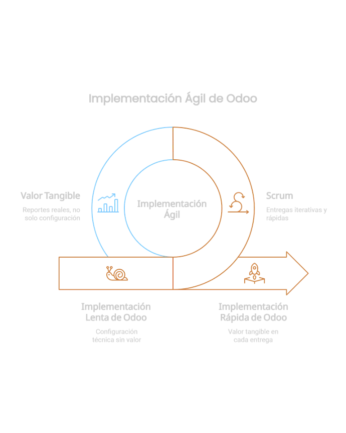 Enfoque en Flujos: Capacitamos a tu equipo por flujos de valor reales (ej. "De compra a pago"), no por módulos aislados.